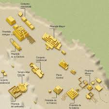 complejidad arquitectónica con edificios piramidales, plazas, su diseño y la